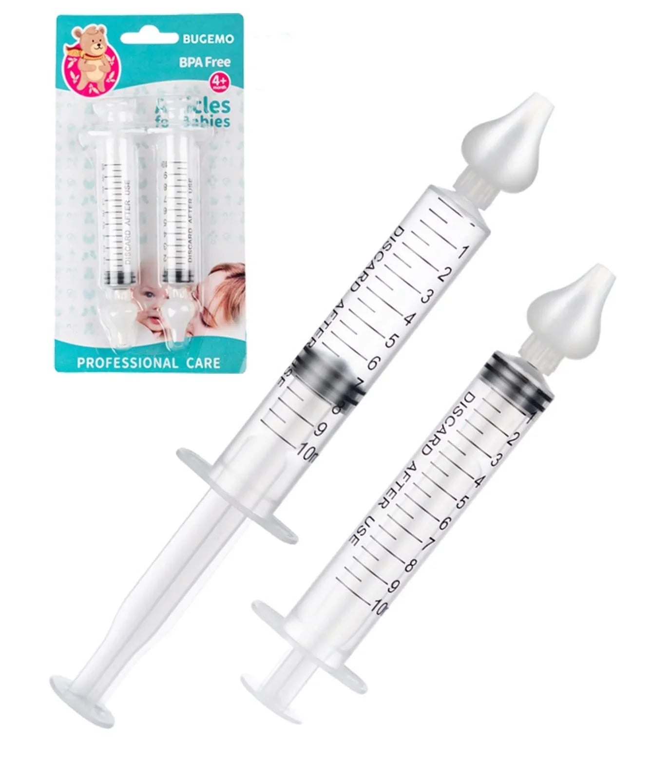 - Sécurité et confort : La tête en silicone souple assure une insertion douce et sûre dans les narines du bébé.